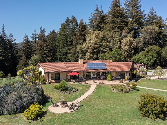 Ultimate privacy and Ocean views from virtually every room, 16 acre retreat-like sanctuary in the Santa Cruz mountains with acres of meadows, room for horses, vineyards, olive groves, etc..Great wildlife viewing and awesome sunsets.This Spanish-style ranch is located in the beautiful hills above Corralitos. Hacienda de la Colina,or Hilltop Hacienda, offers stunning views of the sea and the redwood-studded mountains.Perfect for those seeking peace and serenity in a natural setting. Main house has polished concrete floors w/radiant heat, 3 bedrooms, 2 1/2 designer bathrooms and a large living space divided into living room, dining area and kitchen.Each room in the hacienda allows easy access to the tiled patio, 2020 completed rustic industrial style ADU has 2bed/1bth with its own driveway and an attached workshop.Authentic 1920's barn, Gazebo w/outdoor dining, separate view deck and veggie garden at ADU.the property is approximately 15 min. from the famous Corralitos Market & Sausage Co.