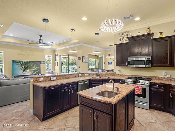 Island with prep sinkHeated saltwater poolBreakfast barSummer kitchenFlexible bonus roomElegant archways and columnsGourmet kitchen