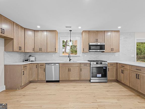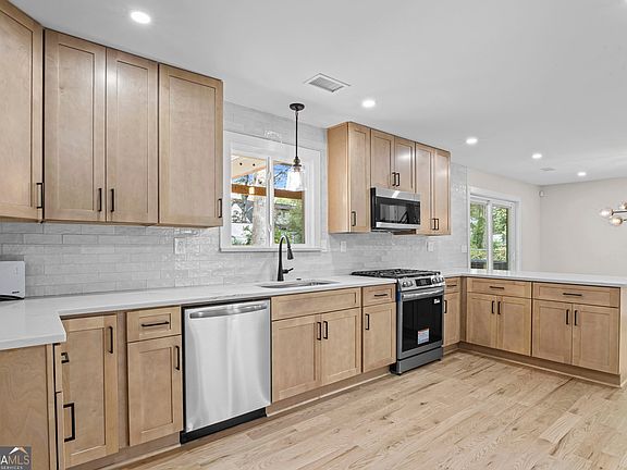 ** Elegant Modern Design ** Full Renovation ** Great find in Gresham Park, nearby to East Atlanta. Open-concept layout with contemporary design boasting a beautiful kitchen with caramello cabinets and quartz countertops, with upgraded stainless appliances. Four-sides brick with cedar and black metal accents, new roof, new HVAC, new energy-efficient windows, and new water heater. New hardwood floors throughout, accented by stylish tile in bathrooms, laundry and pantry. The primary suite boasts a custom walk-in closet, and the sunny primary bathroom features a freestanding soaking tub, an oversized shower, doble-sink vanity, and private water closet. Wonderfully large yard, fenced in the back, on a quiet cul-de-sac street, with two large storage sheds included. Great location - minutes from East Atlanta, the Interstates, downtown Decatur, downtown Atlanta, parks, walking trails, restaurants and convenient to Atlanta Airport.