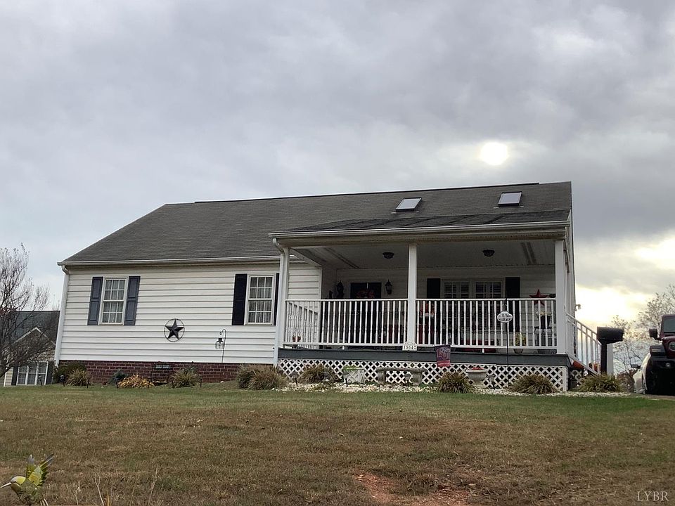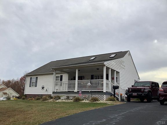 Great Campbell County home with large rocking chair front porch. Living room features vaulted ceiling and corner fireplace. Large eat in kitchen with abundance of cabinets and double doors leading to deck is perfect for backyard cookouts. 16x14 primary suite with private bath. Two additional bedrooms share a hall bath with double vanities and makeup vanity space. Upstairs is the perfect space for a home office and an 18x10 storage room. Large level backyard with plenty of parking area and paved driveway.
