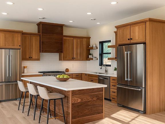 Stunning walnut islandHigh-end finishesCozy gas fireplaceOpen floor planFinished yardCustom kitchenWhite oak cabinetry