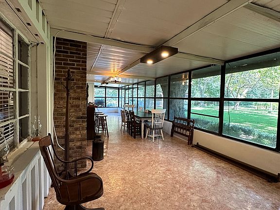 Peaceful country home overlooking a beautiful pond on just over 8 acres, offering lots of extras to enjoy. Perfect for deer hunting and fishing. Features fruit trees, a wired workshop with a bar area in the back, along with two half baths. Enjoy fishing from your own dock or simply relaxing in the evenings.Includes a small guest house overlooking the pond that has a window unit and a full bath. The main home also offers a spacious sunroom with bar area.