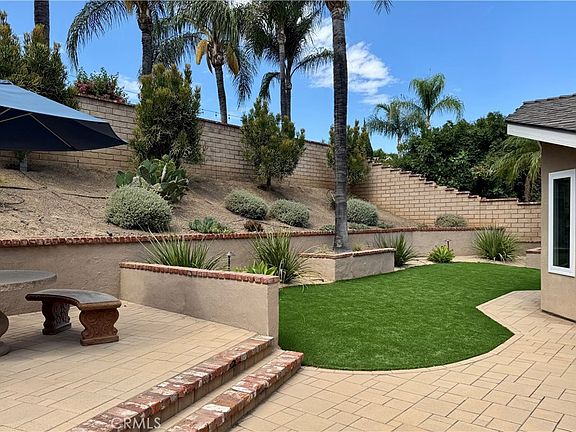Welcome to this beautifully maintained two-story home in a quiet Corona neighborhood. The property features a spacious three-car garage, a large driveway, and a front yard with mature trees and manicured grass that add to its curb appeal. Inside, large picture windows allow natural light to fill the home’s main living area. The backyard offers a private, well-designed outdoor space with tiered retaining walls, established landscaping, and palm trees that provide a resort-like feel. A generous paved patio with built-in steps and planters creates the perfect setting for outdoor dining or entertaining, while low-maintenance artificial turf adds year-round greenery. This home presents a clean, inviting atmosphere both inside and out — ready for new owners to enjoy the best of Corona living.