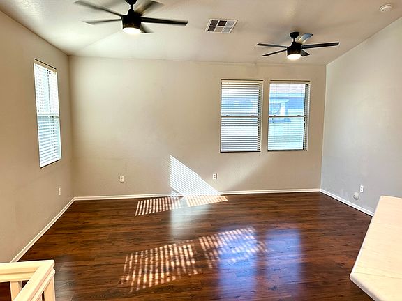 Completely adorable Gardens Community in Gilbert. 2 bedroom plus downstairs office with slider to patio with pavers and turf. Park side entrance embraces the charm of the neighborhood. Downstairs there is the office, laundry and half bath. Up the dramatic staircase leads to the great room with charming tree view, vaulted ceilings, laminate ''hardwood'' floor, center island kitchen with stainless appliances and cozy dining area. Two full bedrooms share a full bath with tub/shower combo. Two full car garage has a ton of storage. Community pool and play areas make this home a dream. Credit under 600 pays 1.5 times rent as security deposit.