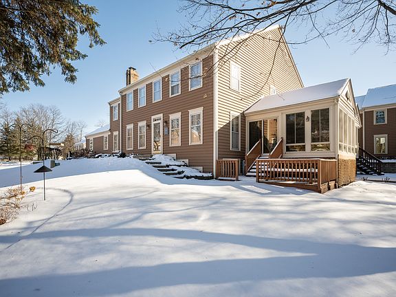 CAPTIVATING SETTING ON ONE OF THE LARGEST LOTS IN CREEKSIDE OF WHEATON! SO VERY PRIVATE WITH WONDERFUL VIEWS OUT EVERY WINDOW! THIS CHARMING SALTBOX COLONIAL HAS A WONDERFUL FLOW W/ LARGE LIV RM THAT LEADS TO 15 X 15 THREE SEASON PORCH AND DECK W/ BUILT IN SEATING THAT IS PERFECT FOR GRILLING AND OUTDOOR ENTERTAINING. YOUR OWN SECRET GARDEN COMPLETE W/ BEAUTIFUL LANDSCAPING, PLANTINGS AND PATHS. HARDWOOD FLRS THROUGHOUT THE FIRST FLR. KITCHEN OPENS TO FAMILY RM W/ FIREPLACE, B/I BOOKCASES AND BREAKFAST RM PLUS SEPARATE FORMAL DINING RM. CONVENIENT 2 CAR ATTACHED SIDELOAD GARAGE. GENEROUS CLOSETS...FOR COATS, UTILITY AND PANTRY CLOSET. ENJOY YOUR OWN PRIVATE WING IN THIS PRIMARY SUITE WITH VAULTED BEAM CEILING AND 3 ADDITIONAL CLOSETS (ONE IS A WALK-IN CLOSET), PRIVATE BATH W/ LARGE TUB AREA, SEPARATE SHOWER AND DOUBLE VANITY PLUS A DEN/OFFICE SPACE ADJACENT! 2 OTHER BEDROOMS AND SEPARATE HALL BATH AND DEEP LINEN CLOSET COMPLETE THE 2ND FLOOR AMENITIES. FULL FINISHED BASEMENT W/ REC RM AS WELL AS STORAGE/LAUNDRY SIDE W/ ACCESS TO ADDITIONAL STORAGE IN CRAWL SPACE. THIS IS ONE YOU HAVE BEEN WAITING FOR IN BEAUTIFUL CREEKSIDE ATTACHED HOUSING. WORRY NO MORE! SHOVELING, LAWN MOWING & EXTERIOR MAINTENANCE WILL BE IN THE REAR VIEW MIRROR BUT YOU BETTER HURRY!!