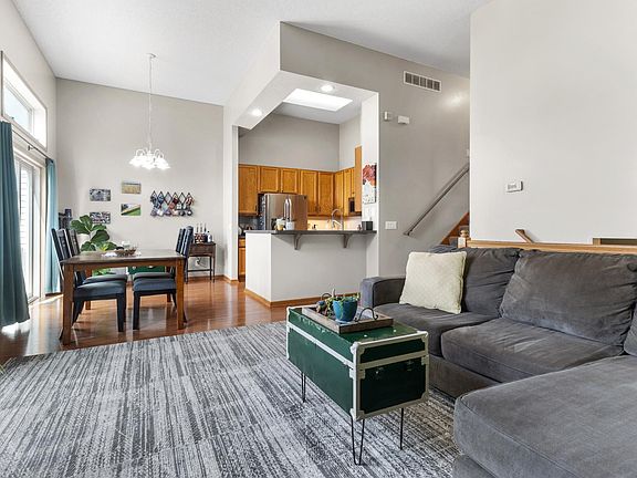 Make this beautiful Apple Valley end unit townhome yours! This unique floor plan is complete with upgraded mechanicals, appliances and other great features you don't typically see in a townhome . The open concept main level is flooded with an abundance of natural sunlight from it's southern exposure, 12 foot ceilings and large windows. Enjoy the upgraded high-end kitchen appliances and reverse osmosis water filtration system. The upper level hosts 2 generously sized bedrooms, including the primary with a beautifully updated 3/4 bath and walk in closet, and a separate full bath. Both bathrooms provide natural light from tube lighting, a feature you didn't know you needed, but will appreciate and never want to live without again. Lookout lower level has family room with gas fireplace, powder room and office with built in desks; perfect if you work from home or need space for crafting. Build instant equity and remove the desks to add a 3rd bedroom. Don't' spend your summers stripping and staining the deck with this maintenance free deck complete with attached umbrella to provide relief from those sunny days! Garage has built in work bench and cabinets to provide plenty of storage and is complete with epoxy flooring. Add in the proximity to shopping, schools, and trails, and this townhome has everything you need!!
