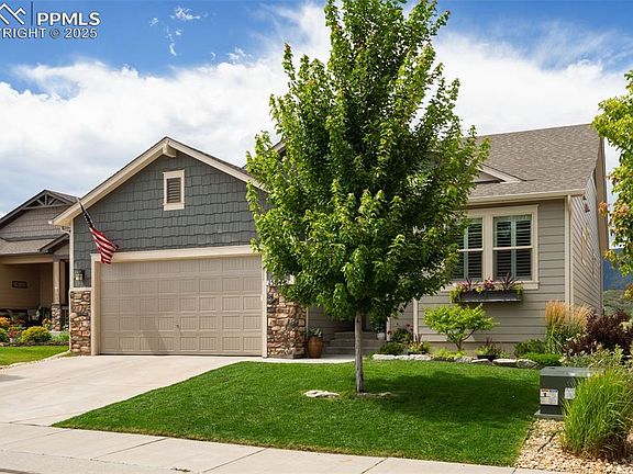 Experience Colorado living at its finest in this beautiful ranch-style home on the shores of Pinon Lake in the sought-after Forest Lakes community. The spacious great room features a dramatic stacked stone fireplace and a wall of windows framing breathtaking lake views. Step out to the maintenance-free deck or enjoy easy access to the backyard and waterfront. The gourmet kitchen shines with granite countertops, stainless steel appliances, a gas stove with hood vent, and a large center island with seating. The primary suite offers more lake and mountain views, a walk-in closet, and a luxurious oversized walk-in shower. A second bedroom/office, full bath, and laundry complete the main level. Downstairs, the finished garden-level basement boasts a large family room, custom wet bar, two additional bedrooms, and a full bath—perfect for entertaining. Beyond Pinon Lake, Forest Lakes also offers Bristlecone Lake, where you can paddle boat, kayak, and enjoy catch-and-release fishing. All this, just minutes from I-25, downtown Monument, and the new Ford Amphitheater in North Colorado Springs