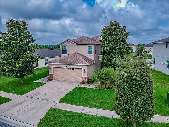 Welcome to this meticulously cared for home in Lone Star Ranch with a stunning water view. This four bed three bathroom home boasts a magnificent open floor plan with upgraded tile throughout the entirety of the home. The first floor has a kitchen with a tiled backsplash, custom cabinets, large panty and island for additional prep space. The expansive great room has back sliders that lead out to the covered and screened in patio area overlooking the pond. This space makes for a great entertaining area and adds to the functionality of this homes floor plan. Upstairs the master bedroom has a large walk in closet and master bath has dual vanities, granite countertops and a tub/shower combo. The additional bedrooms are large enough to fit a queen bed with one being a media room/den that can also function as a bedroom. The secondary bath has granite and is updated. Exterior of the home and lot is well landscaped and home has great curb appeal.