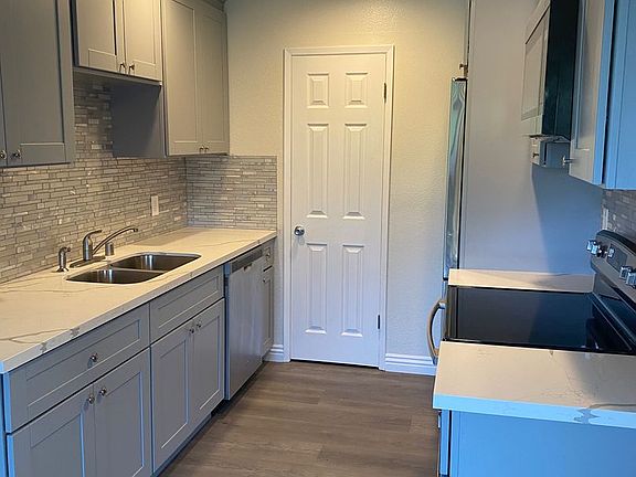 Kitchen comes with electric stove, dishwasher, microwave and refrigerator.