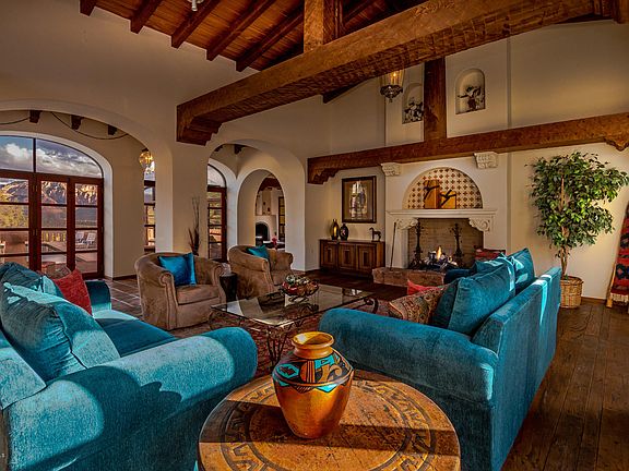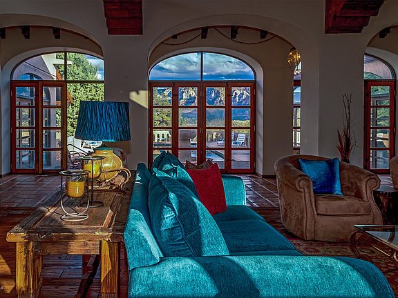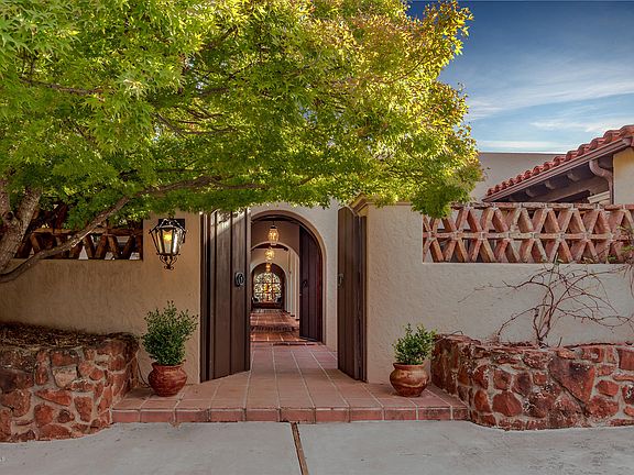 Designed by Tlaquepaque architect, Bob McIntyre, this refined home breathes singular character on a location of special privacy and grand views. The great living room features massive old world rustic hewn beams and cedar corbels. Enjoy courtyard garden patios, a huge courtyard adjoins the pool with panoramic red rock views. The four bedrooms each with bath, access from the tiled hallway. Built in 1977 on 1.73 acres this 4112 SF home invites upgrads to make it buzz for parties or hum in solitude.