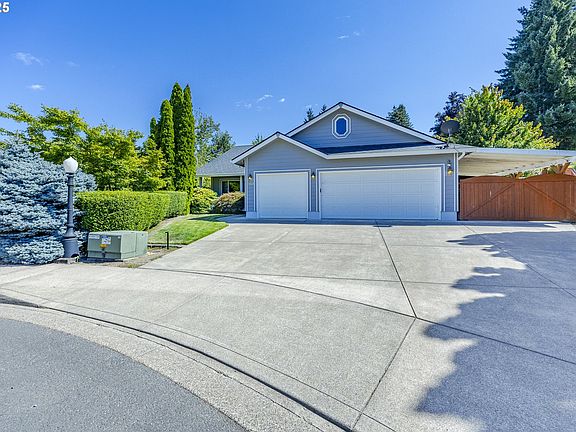 Charming single-story home in a desirable cul-de-sac. Nestled in a wonderful neighborhood, this well-maintained home radiates pride of ownership. A three-car garage, RV parking, and storage for a boat are bonuses. Added upgrades include a new roof and a security system for peace of mind. Enjoy an immersive home sound system that makes every movie or music feel like you're in a private theatre. This home features vaulted ceilings, a gas stove, laminate floors, an open dining and kitchen area, plus a versatile sunroom. The kitchen is spacious and open, featuring a convenient breakfast bar, a pantry, and abundant cabinet storage. This layout offers great separation of space with generously sized rooms. The primary suite boasts a walk-in closet and spacious bathroom with double sinks for added convenience. Laminate floors and plush carpet create a cozy atmosphere throughout. Step outside to a thoughtfully designed backyard with a covered patio and a large deck overlooking the lush grounds. Perfect for entertaining or unwinding, the outdoor space includes room for a garden, a relaxing hot tub, and plenty of space to enjoy the fresh air. This home truly offers something for everyone-whether you're hosting friends, enjoying peaceful evenings in your hot tub, or soaking in the vibrant sunsets from your deck. You are sure to love this gem!