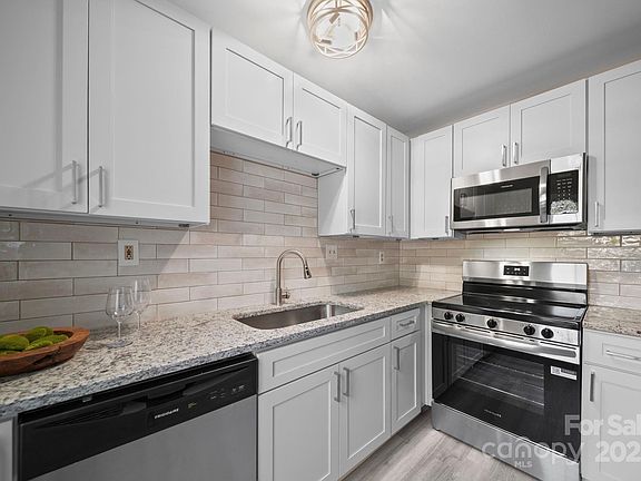 Stunning completely remodeled 2BR/2BA condo with 1,126 SF and located just 2 minutes from I-77. This home has an open floor plan with seamless flow and is located in a quiet development with lots of rehabs. Recent updates include luxury vinyl plank flooring throughout, fresh paint, updated lighting, and modern kitchen with quartz counters, stainless appliances, and white cabinetry. Both bedrooms feature beautifully updated ensuite baths with luxury tile, quartz counters and new vanities. Cozy fireplace in living area perfect for entertaining. You'll love the spending time with friends on the screened porch accessible living room. Close to dining, shopping, and entertainment. Move-in ready condition!