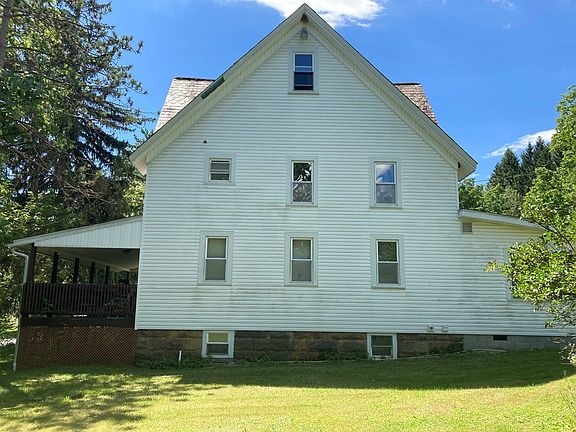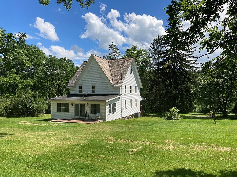 A great opportunity for a full-time family residence, or upscale camp for seasonal visitors on 37.25 acres close to Interstate. This 1900 farmhouse received all-new plumbing and electrical in 1990, plus additional updates including central forced air cooling & heat, vinyl siding with full exterior insulation wrap, and 2x4 interior construction with blueboard. Major systems are in working order, and slate roof maintenance was conducted in 2022. A beautiful sun porch on the back (and deck) look north of the property into the fields. With some TLC, this can be among the nicer hunting camps for the right visitor, or a beautiful full time residence. Open ground floor layout and updated oak trim bring warmth to the ground floor. The attic is a massive opportunity for the right buyer as well, due to the height & pitch of the roof and updated insulation. While there is an outbuilding, it is unusable, though the foundation could serve as base for future buildings or updates.