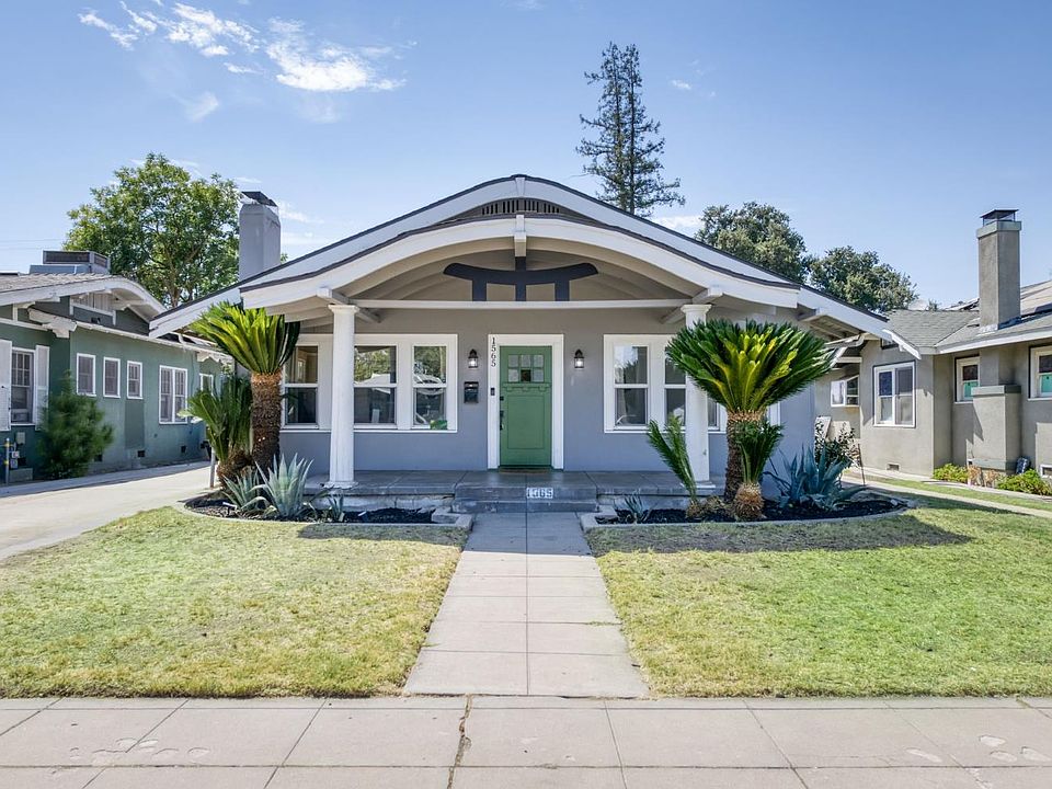 Beautifully restored 1925 home located in Fresno's iconic Tower District. Renovated in 2022 with many original features preserved, including the fireplace and built-in bar. This 3-bedroom, 2 bath home offers 1,320 sq ft of living space on a large 7,525 sq ft lot. Interior features include abundant natural light, laminate flooring, new custom soft-close cabinets, updated countertops, and a dedicated mud/laundry room. Bedrooms have newer carpet, and both bathrooms have been fully remodeled. Spacious backyard with a patio and market lighting deal for entertaining. Located just blocks from shops, restaurants, parks, and entertainment. Centrally positioned between Fresno High and Downtown Fresno with access to the weekend trolley, local breweries, and newly developed green spaces like Trolley Park and Broadway Park. Move-in ready with modern updates and historic charm.Bath Count differs from Tax Records, buyer to verify if important.