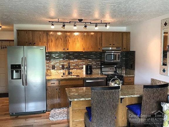 Completely remodeled 1st floor unit with unobstructed views of the Deschutes River. Beautiful with granite countertops, hand carved hickory hardwood floors, marble flooring in bathroom, stainless steel appliances, bronze fixtures throughout, heat pump with A/C and new fireplace. Completely furnished including Murphy Bed. Covered parking, indoor pool and hot tub. Walk to downtown or enjoy numerous walking trails. HOA includes electric, gas, TV, internet, water, security, and landscaping. Owner will carry!