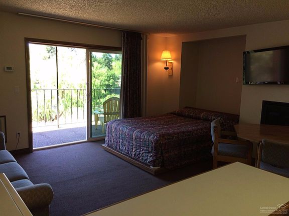 Perfect condo unit w/ amazing view of the river from the balcony, plus it has a ground floor entrance. Bend Riverside Condos are next to Pioneer Park & steps from downtown. Studio Apt w/ Fireplace & Balcony. HOA dues cover water, sewer, power, gas, & access to the indoor swimming pool & Hot Tub. Currently in the rental pool which provides Wifi & Cable. The complex features charming grounds & is on the River Trail. Perfectly situated near downtown Bend. Sure to go quickly.