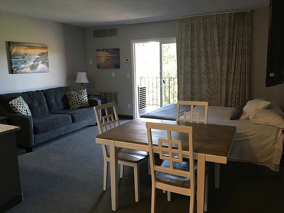 Fully Furnished 1 bedroom with great location! This one bedroom unit is nestled along five garden-like acres on the banks of the tantalizing Deschutes River. Just minutes from a myriad of outdoor activities and only 4 blocks from the many restaurants, shops and boutiques of downtown Bend. Upon entering the unit, to the left, you will find the dedicated bedroom with attached en suite bathroom. The bedroom is furnished with a plush queen bed, nightstands, wall air unit, window for natural light and built in granite counter desk space. The en suite bathroom features a stand alone shower and vanity storage space. The second bathroom includes a tub/shower combo and additional vanity storage. On the right side of the unit is the kitchen which features white cabinets, granite countertops, electric stove, and additional granite countertop with cabinets for extra prep space. The open concept then flows into the living and dining area. For dining there is a nice sized table and chairs. A couch, gas fireplace, and flat screen tv make the living room feel roomy and cozy There is also a Murphy bed for guests. Check out to amazing views of the Deschutes river off the balcony. Truly peaceful and serene. This one won't last long! * 6 Month Lease * Fully Furnished * Laundry room on site * Utilities Included: Water, Sewer, Garbage, Gas * Great Location * Parking onsite * No pets * No Mail Delivery on site, tenant will need a P.O. Box This is a furnished unit *All rental listings and availability are subject to change without notification. All information is deemed reliable, but not guaranteed. Offered by PLUS Property Management, LLC 6 Month Lease, no smoking