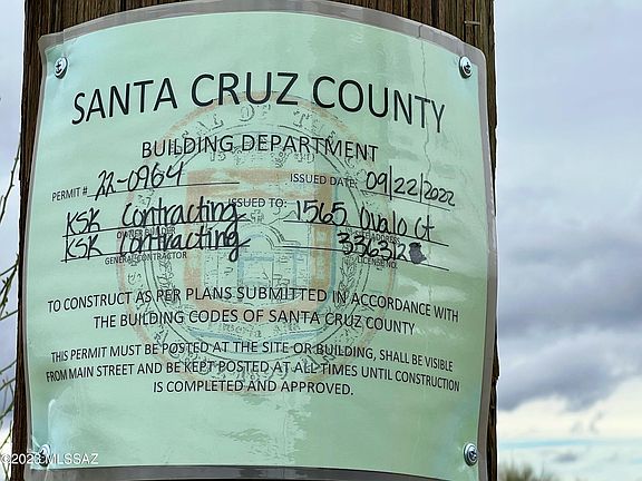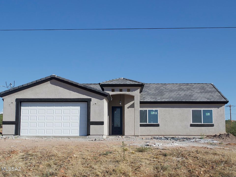 NEW BUILD IN PROCESS! Property is in the process of being built approx. 3 months to completion. Now is the time to get involved! You can purchase the standard home per the plans, or you can upgrade & choose the finishes! The views from this hillside elevated lot are impeccable! Imagine looking out your back patio & seeing nothing but mountains! Century Link Internet at the street corner if you want, or get Satellite internet. 3 bedroom 2 bath w/ 9 foot ceilings throughout! Over height garage is 9 ft 4 inches & 570.45 square feet! There's plenty of space for all your toys. Located on a culdesac on .8 acres! Great room setting so you can entertain & still be near your guests, overlooking the covered patio & those amazing views! Seller is adding a Chain Link Fence across the back portion of the property pad to prevent anything from rolling down the rear hill yet to maintain the views. The Primary bedroom includes a walk in closet & a spacious bathroom w/ granite countertops, an oversized shower & water closet w/ dual flush toilets. Home offers an additional 2 bedrooms & guest bathroom w/ shower/tub combo & dual flush toilets. Wood-look Tile throughout! LED Lighting will be installed throughout for the most efficient lighting around. Rio Rico is still one of the best kept secrets in Southern Arizona. Brand new home built in a quiet town that is within 15-20 minutes drive to major shopping & hospitals. Space between your neighbors, NO HOA to tell you what to do, & all for $285,000! Deals like this don't come around too often. Builder has more floor plans & lots available so inquire today! This property comes equipped w/ a septic tank as well. Standard 2 year builder warranty conveys at close of escrow! One of the listing agents is related to the seller.