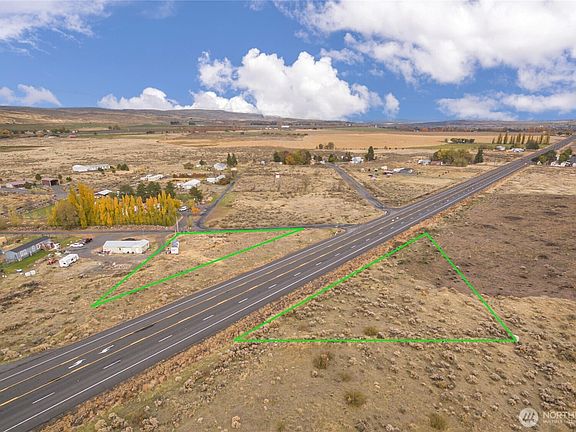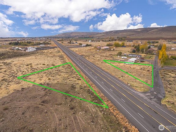 Approximately 2.5 acres east of Ephrata with prime Highway 28 frontage. The property is split by the highway—one triangular parcel sits north of Highway 28 at Road 17.6 NW, and the second portion lies directly south. Great exposure and accessibility for a variety of uses.