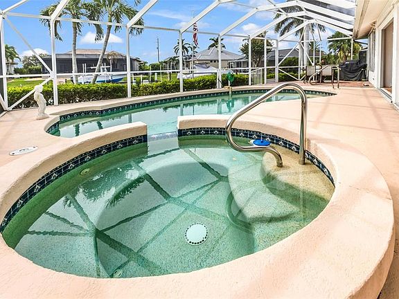 Waterfront pool homeCovered lanaiBreakfast barSplit-bedroom layoutDeep-water canal frontageSilestone quartz countertopsOpen floor plan