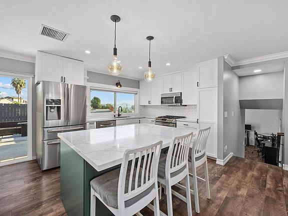 This beautiful 4 bedroom, 2.5 bath home in El Cajon offers convenient freeway access and stunning views. Freshly painted inside and out, the spacious living areas are filled with natural light. The well-appointed kitchen and cozy dining area are perfect for family meals. Each bedroom provides ample space, comfort and privacy. The backyard is a private oasis with a sparkling pool, perfect for summer fun. Enjoy the large driveway, 2-car garage, and energy savings with paid solar panels. Don’t miss out on this exceptional home!