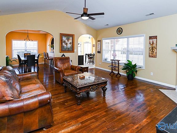 Make your next home 15651 Coach House Court in sought after Bridge Water Landing subdivision. Full brick ranch, roof 3 years old with 35 year architecture shingles, easy maintenance outside and inside. Hardwood floors, in main area and beautiful tile floors in hall way, master bedroom, and bathrooms.Quartz countertops in kitchen and bathrooms, fire place in living room, true seperate dining room, eat in kitchen. Bedrooms are generous size.Enjoy the backyard deck or the air temperature controlled sun room. Fenced in back yard, for everyone's enjoyment. Clifton farms finest local dining, shopping and Costco/Hospital 8 min away. Minutes to Redstone arsenal, and Huntsville.Rare find, must see.