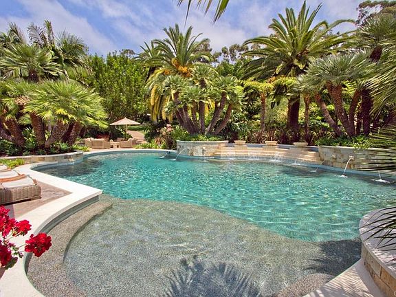 Located in the prestigious Covenant of Rancho Santa Fe, this exceptional custom-built estate spans 8 acres of pristine grounds. Beyond the grand gated entrance, a picturesque bridge leads over a serene freshwater pond, setting the tone for the tranquility and elegance of the property. In addition to the main residence, the estate includes five thoughtfully designed structures: a dedicated gym, a private spa building, a two-bedroom guest house, a two-bedroom staff house, and auxiliary detached garage. The grounds are adorned with mature landscaping, a lush grass arena, a full regulation tennis court, and expansive open spaces that create a resort-like atmosphere. Kids of all ages will love the bowling alley and game room built into the hillside. Auto lovers will appreciate the ability to house 10 cars. The main residence is a masterpiece of luxury and functionality, featuring five spacious bedrooms, an executive office, a state-of-the-art director's theater, an oversized entertainer's kitchen, a welcoming family room, and a vibrant game room. Conveniently situated on the west side of the Covenant, the estate offers easy access to the freeway and is just a 10-minute drive to the stunning beaches of the area. This property combines unparalleled privacy with exquisite amenities, making it a rare gem in the heart of Rancho Santa Fe.