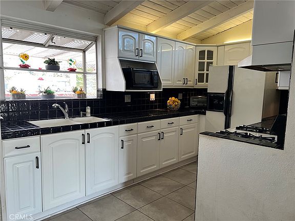 Welcome to this lovely, warm home! Assessor shows 5 bed (4 downstairs, 1 upstairs), 3 bath (2 downstairs, one upstairs), 1,884 sq. ft. interior, 8,059 sq. ft. lot, and built-in Pool! One bedroom is used as a bedroom/office and the 5th bedroom is the converted attached garage (which can be converted back). The amazing permitted 2nd story is private and completely separate with full kitchen, living room with cozy corner fireplace, ensuite full bathroom, and bedroom with large deck overlooking expansive, peaceful backyard with pool. The secluded upstairs is ideal for in-law quarters, guests, maids quarters and more! The kitchen has tile floors, lots of tile counter space, plenty of cabinets, stainless steel sink, gas range, and beautiful garden window facing the front of the house. The open and inviting living room and dining area have wood beam ceilings and a sliding glass door which leads to the huge pool yard with expansive awning and grassy area for multiple entertainment uses. The expansive, circular pool is half in-ground and half above ground as well. Two downstairs bedrooms overlook the quiet backyard with conveniently located bathrooms. Most bedrooms have ceiling fans. Additional features include leased solar panels on the young roof, young furnace and water heater, dual zoned A/C for downstairs/upstairs, skylight on stairway leading to upper-level casting loads of sunlight, washer/dryer hook-ups, enclosed front gated entrance, spacious driveway with abundant parking in front of property, side yard and backyard have handy storage sheds. Located close to schools, shopping, grocery stores, minutes away from the 118, 405, 5 freeways. This home has so much to offer you must see to appreciate! Buyer to verify.