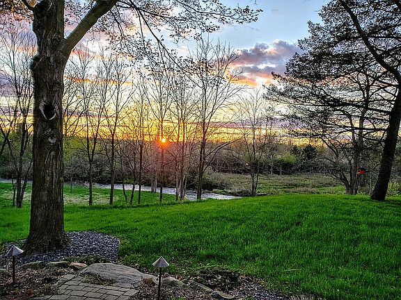 Gorgeous brick home on a hill overlooking the Clinton River with acres of landscape, wildlife and natural forest with a full additional home, barn, kids home, and office space on the property.