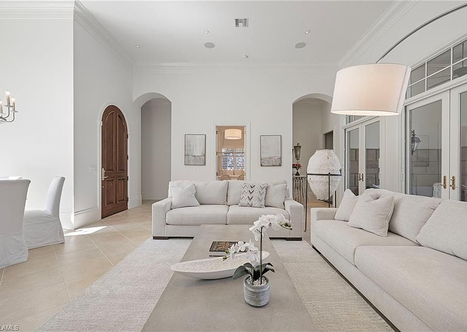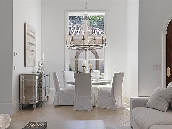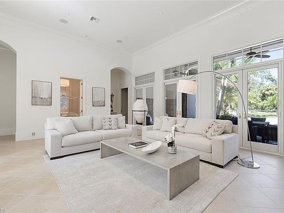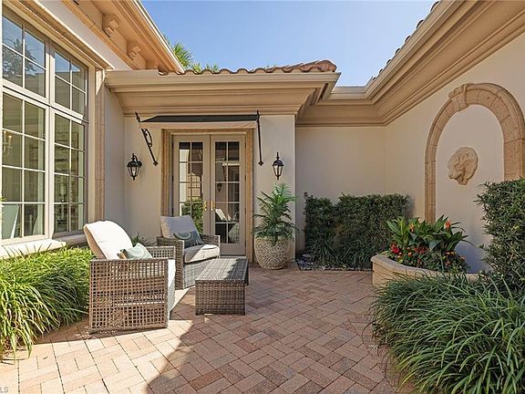 This luminous and generously spaced residence features hurricane-impact windows and doors, a whole house generator, electric screens at outdoor living area all which are complemented by a new roof installed in 2018. This exquisite three-bedroom, three-bath home, fully furnished and move-in ready. As you drive in the Villoresi neighborhood of Mediterra, a beautiful fountain greets you as you drive along the tree-lined streets. Inside, custom light fixtures and mirrors adorn the interiors, adding an air of sophistication. Step outdoors through charming French doors onto the airy lanai, a glistening pool and scenic water view, a serene haven for leisure and hosting. Take advantage of outdoor entertaining with a built-in outdoor kitchen featuring a high-end gas grill. Indoors, the kitchen is a culinary enthusiast's delight, showcasing stunning granite countertops and premium Viking and Sub-Zero appliances. Listen to the water trickling down the fountain through French doors that open to the front courtyard. All French doors featuring retractable screens allowing soft breezes to flow through the home. Escape to the primary suite where soft Venetian plaster walls create a peaceful haven. Additional features include a whole-house generator, a tankless water heater, epoxy flooring in the garage, crown molding throughout and plantation shutters, this home is a must see! Enjoy your toes in the sand and golden sunsets at Mediterra's fully renovated private Beach Club, situated along the Gulf! Imagine arriving to have your car valet parked and and lounge chairs and umbrellas waiting for your arrival or set up upon your request. With 10,000 square feet of space, the upper level offers indoor and al fresco dining, a full bar, swimming pool along with lockers and dressing areas for changing. Spend the day and enjoy dinner while watching the sun set in the distance. In the award-winning community of Mediterra where you can have it all with 36 holes of Tom Fazio championship golf, Har-Tru tennis courts, pickleball, bocce and a private beach club!