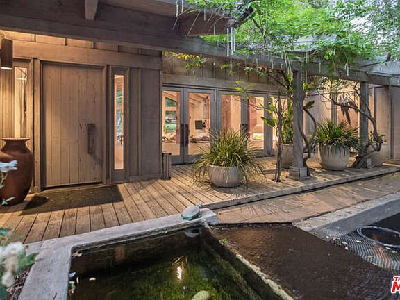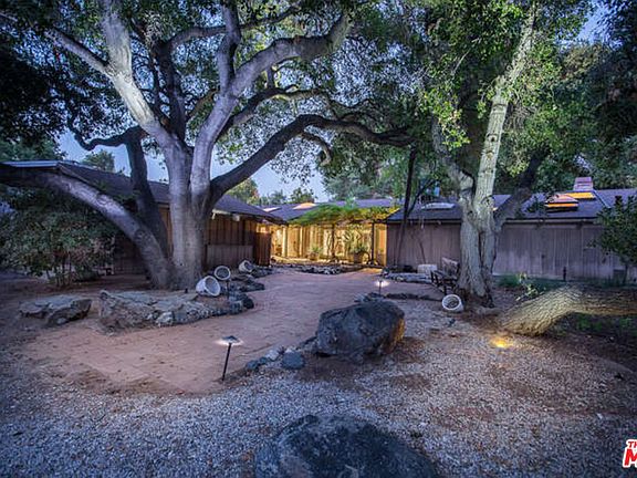 Picture perfect custom designed Sand Canyon Ranch Estate nestled on nearly 3 flat acres emanating tranquility, privacy and natural bliss! An entertainer's oasis originally designed by Legendary Architect Archibald Quincy Jones, adorned with stunning California Oak Trees, resort style swimming pool and spa, gated tennis court with vintage pavilion, organic rose and vegetable gardens, koi pond, chicken coop, HORSE STABLES and incredible PASTURE, this property is one to cherish for years to come! Featuring a Waldo Fernandez designed Great Room with cathedral wood beamed ceilings, antique wood paneling and floor-to-ceiling windows creating the perfect indoor/outdoor ambiance! The chef's kitchen features a Josh Schweitzer stainless steel prep area, center island, timeless stone countertops, walk-in pantry, Viking appliances and wood-burning pizza oven. The exquisite main house features a spa-like master retreat with two fireplaces, cozy reading space, ensuite bath with dual sinks, concrete countertops, dual closets, skylights, atrium and jacuzzi tub with plenty of room for a home gym. The detached 2 story guest house opens to the pool area with 2 entrances, 2 bedrooms, 2 baths, kitchenette, living room, stone fireplace and loft! This majestic Sand Canyon Estate is minutes from the Placerita Nature Center, fantastic schools, shopping and restaurants!