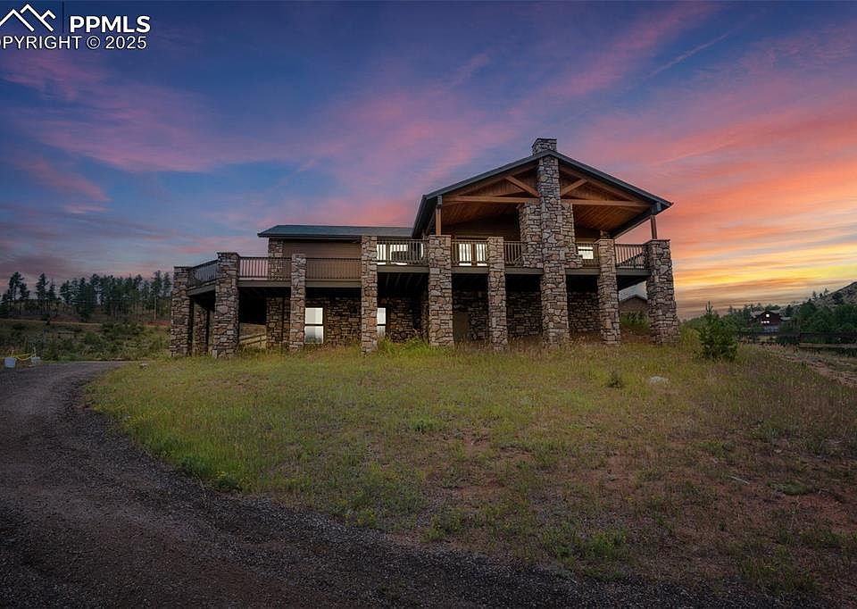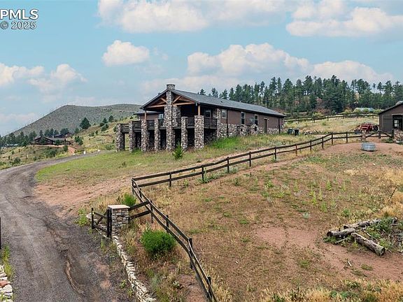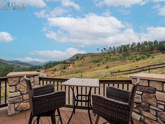 Imagine pulling in through the front entry gate, greeted by breathtaking mountain views that stretch endlessly in every direction. No need to imaging anymore – situated in a million dollar neighborhood and on almost 6 acres, this wonderful home features an open floor plan, old barn wood floors, unique fireplace, coffered ceilings & huge wrap-around deck featuring an outdoor stone fireplace. The open kitchen features a newer oven & microwave, canned lighting and an island w/higher seating & pendant lighting. The spacious main floor primary BR has coffered ceilings, built-ins shelves, walk-in CL, en-suite bath & double glass doors leading to the deck, perfect for relaxing after a long day. There are 2 additional BRs on the main level & a remodeled hallway bathroom. Main floor laundry features a utility sink, cabinets & shelves. Additional highlights include a tankless water heater, radon mitigation system, water filtration system, humidifier, structural floor with steel joists and a new roof (2024). The walk-out basement provides high ceilings, solid wood doors, a walk-out entry, non-conforming BR & plenty of potential for expansion. The oversized garage offers ample storage, cabinets & counters for workshop projects. Plenty of room for guest parking, RV parking and/or horse trailer. This fabulous horse property is fully fenced with cross fencing for separate pastures, a 2-stall barn and a professionally engineered & permitted retaining wall. Pine is well-known for 'Banana belt' weather conditions and outdoor activities including hiking, horseback riding, mountain biking, fishing, kayaking, camping, rock climbing & 4-wheeling. Close access to US Hwy 285, Pine Valley Ranch Park & Open Space, Buffalo Creek, Wellington Lake, Lost Creek Wilderness, Staunton State Park & Gold Medal Fishing at the south Platte. This unique property combines rustic charm with Colorado beauty — a perfect retreat for nature lovers and those seeking a peaceful mountain lifestyle.
