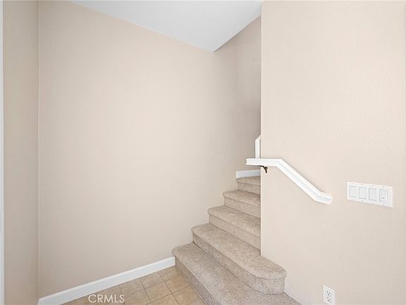 Welcome to your new sanctuary in Lake Elsinore! Nestled within the sought-after Vista Del Lago community, this exquisite two-bedroom, two-bathroom condominium is a rare find. Step into elegance through the inviting tile foyer complete with a generous coat closet. Going up a flight of stairs you will find a harmonious open layout featuring a dining area, living room, and kitchen adorned with stainless steel appliances, including a dishwasher, chic tile cabinets, and a convenient bar. All bedrooms are thoughtfully situated ensuring privacy and tranquility. A private balcony offers tantalizing glimpses of the majestic mountains and serene lake, enhancing your daily relaxation. Enjoy an abundance of natural light, ceiling fans, and captivating views of the picturesque foothills throughout the entire upstairs space. The expansive master suite boasts an en suite bathroom with a walk-in closet and dual vanity sinks, providing a tranquil retreat. For added convenience, an attached one-car garage with an included washer/dryer offers direct access to the condo, complemented by an extra parking space.