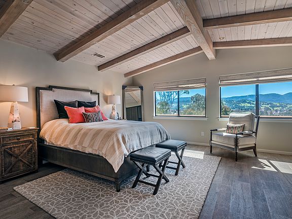 Home Sweet Home. Panoramic views from this masterly remodeled Solvang home. The lot is very large for this area and plenty of room for a pool or vines or playground. Spacious new kitchen, very large Master suite with new builtins, and all new bathrooms. Both fireplaces have been redone with style.All new light fixtures throughout. New paint, new flooring, and the W/D are included along with new wine fridge. You'll be the envy of the neighbors with the new epoxied garage flooring. This home is uniquely private while being close to everything cool in Solvang. Walking or biking distance to Farmers market, the parks, the schools, restaurants and shopping. Professional pictures are coming. Plans for expansion are available.