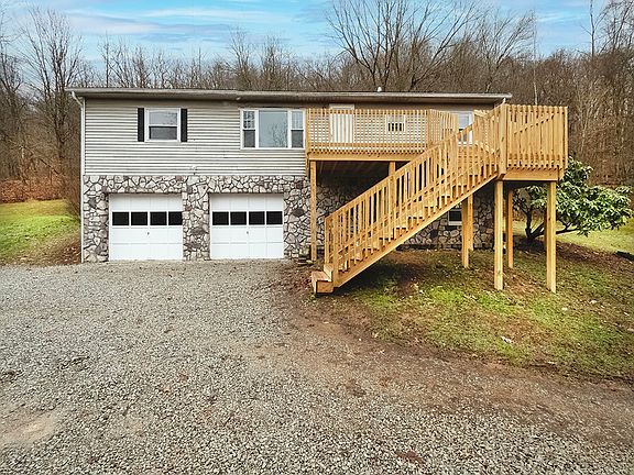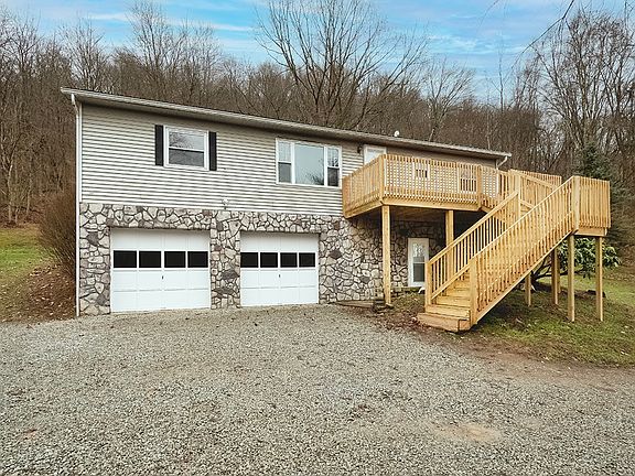 Nestled on 10+ acres, this 3 BR, 2.5 bath rustic-style ranch is an outdoor enthusiast's dream--perfect for hunters--& the 2 car garage can store vehicles or your toys! This home features many updates, including a new metal roof, central air, and a beautifully renovated kitchen with Amish-built solid hickory cabinets and stainless steel appliances. Both main floor bathrooms have also been fully remodeled and boast the same gorgeous cabinetry! Enjoy a cozy basement game room with finished walls, ceilings, & a gas fireplace. The living room showcases vaulted ceilings with tongue-and-groove woodwork. The spacious owner's suite offers a large en-suite bath & walk-in closet. All bedrooms include generous closet sizes. Relax on the brand-new front porch or the spacious rear deck, ideal for entertaining. The shed on the property allows for additional storage. The expansive acreage & abundant foliage create a serene, country atmosphere while still being close to many conveniences.