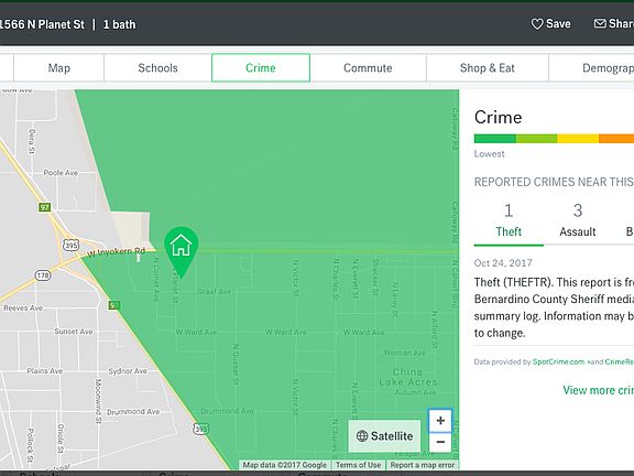 4.42 Acres of land for sale in Kern County, California! The Golden State is the perfect place for you to move your mobile home, or to build your first home! Located in Ridgecrest, California, the property is gas & electricity accessible. The first property (APN: 352-210-46) has an old well (condition unknown) and an uninhabitable/destroyed mobile home on the property. Being sold as land value. It is two 4.42-acre side-by-side properties being sold individually for $12,000 each or together for $22,000 (APN: 352-210-46) (the one with the well) and (APN: 352-210-44). Give me a call if you are interested at the number on the listing or send me an email. Property Address: 1566 N Planet St, Ridgecrest, CA 93555 Mobile-Home Approved? Yes 97% Commute score on Trulio Lowest crime rate in Kern County READY TO BUILD!