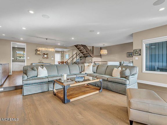Welcome to this exceptional, fully renovated townhouse located in the highly sought-after Sunrise community in Sea Bright. Highlighted by ocean and river views from the FIVE balconies, this modern home offers 4 spacious bedrooms, 3 ½ luxurious baths, and nearly 2,200 square feet of living space designed for comfort and sophistication. Step inside to discover high-end finishes at every turn. The open-concept living/dining/kitchen area on the main level features engineered wood flooring and an abundance of natural light bookended by two private balconies providing beautiful panoramic views. The chef-inspired Scavolini eat in kitchen is a masterpiece, equipped with premium Césarstone, quartz, and tempered glass countertops, and top-of-the-line, high-tech appliances - perfect for both entertaining and everyday living. The main level is completed by the cozy gas fireplace with limestone hearth, and a fully renovated powder room. Each level of the home is connected by a custom white oak staircase with tempered glass and handrails. The upper bedroom level feels like Penthouse living featuring 3 bedrooms, 2 baths, and two balconies. The spa-like master bedroom suite is your personal sanctuary, with sweeping views from the oversized balcony, a large walk-in closet, and an exquisite full bath that features premium fixtures and finishes. Laundry on this level makes everyday life even better! On the lower level, a rare first-floor bedroom suite with full bath creates floorplan flexibility by providing living space for family and friends who value their privacy. The lower level balcony/porch offers easy access to the courtyard, pool, and tennis court, making it easy to access the wonderful amenities Sunrise has to offer. The lower level also features a full laundry room, mudroom, and direct access from the oversized two car garage. Other "worry-free" features in this special home include a tankless water heater and new Andersen sliding doors and windows that have been upgraded throughout.