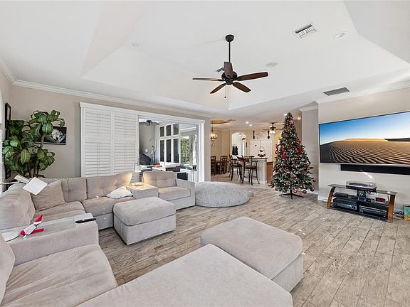Screened gas-heated poolCovered lanaiPrivate oasisThree-car garageGas rangeCustom built-insSpacious family room