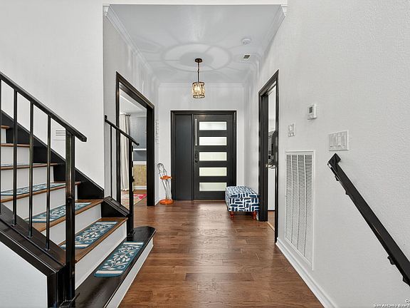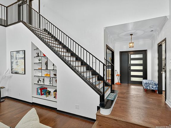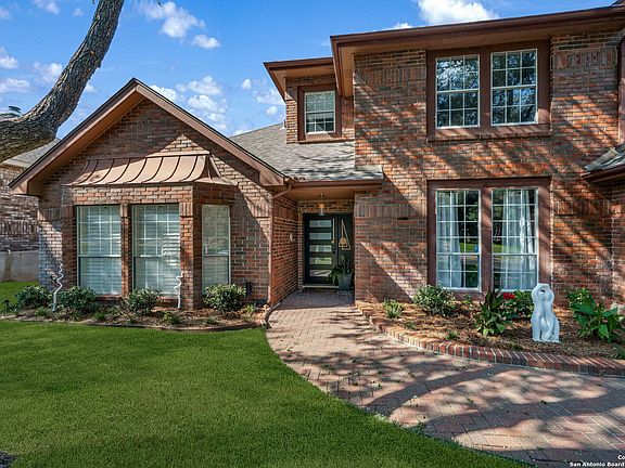 ***OPEN HOUSE This Saturday & Sunday October 18th & 19th 2pm-5pm!*** Designed for gathering, entertaining, and unwinding - this impeccably renovated Deerfield home captures the best of San Antonio living! Step inside to soaring ceilings, abundant natural light, and an open-concept floor plan designed for entertaining. Fresh paint, new flooring, and statement wallpaper elevate this home with a curated, high-end aesthetic. The completely remodeled kitchen (2023) is a showstopper - featuring brand new cabinetry, a wine fridge, striking marble countertops, all-new stainless appliances, and an oversized island with seating. Plus, the coffee bar adds the perfect touch for your morning routine. The spacious living room impresses with floor-to-ceiling windows and a dramatic fireplace centerpiece, while the downstairs master suite offers a private retreat filled with sunlight and a cozy sitting area. The primary bathroom has been fully redesigned with a large walk-in shower with dual shower heads, dual vessel sinks, and modern finishes. Downstairs also includes a flexible second living area, game room (or could be used as the study or office space) complete with a wet bar - perfect for movie nights or entertaining guests. Upstairs, find additional spacious bedrooms and beautifully updated bathrooms. Step outside to your private backyard paradise - complete with a sparkling inground pool and hot tub, lush mature landscaping, a covered patio, and a full outdoor kitchen ideal for BBQs and gatherings. Tall trees surround the back fence for complete privacy - the perfect setting for poolside relaxation or hosting friends and family. The custom pergola and built-in seating area create the ultimate spot for relaxing or entertaining under the Texas sky. With new garage doors, an updated front walkway and driveway, and meticulous landscaping, this home offers true curb appeal and move-in-ready luxury in one of San Antonio's most desirable neighborhoods. Located in the amenity-rich Deerfield community near top-rated NEISD schools, shopping, and dining - this home is the perfect combination of elegance, comfort, and convenience.