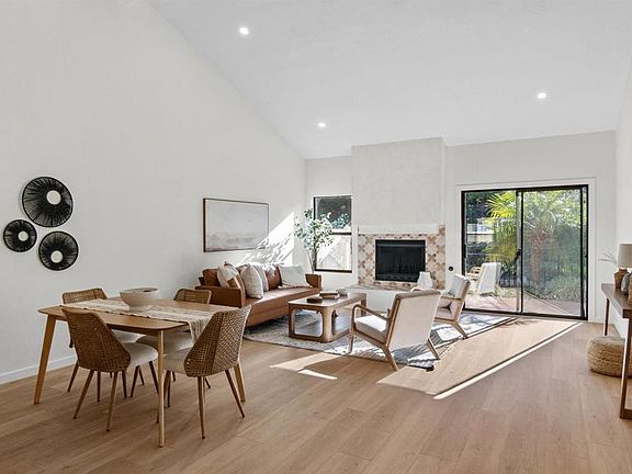 Welcome to this beautifully remodeled townhome in the sought-after Las Floras community of Bernardo Heights, offering the privacy and feel of a single-family home. This exceptional 3-bed/2.5-bath features a rare layout with two spacious primary suites—one conveniently located on the first floor and a second oversized suite upstairs, ideal for multigenerational living or hosting guests. The heart of the home is the stunning kitchen, showcasing honed Perla Venata countertops and seamless connectivity to the dining and living areas—perfect for both everyday living and entertaining. Luxury vinyl plank flooring flows throughout, complemented by soaring vaulted ceilings that enhance the home’s open, airy feel. Spa-inspired bathrooms feature double vanities in both primary suites, creating a true retreat-like experience. Upstairs, an additional flex room provides the perfect setting for a home office, gym, or creative retreat. Modern upgrades include a newer HVAC system and furnace, ensuring year-round comfort. Enjoy outdoor living with a charming front courtyard entry and a private rear patio, ideal for relaxing or entertaining. Residents of Bernardo Heights enjoy access to the Bernardo Heights Community Center, offering a true country club lifestyle with pools, spa, tennis courts, fitness room, billiards, newly added pickleball and basketball courts, and elegant lounge areas. Ideally located just a short walk to Lucido Park, Bernardo Heights Middle School, and Rancho Bernardo High School, this home blends luxury, convenience, and lifestyle in one of North County’s most desirable communities.