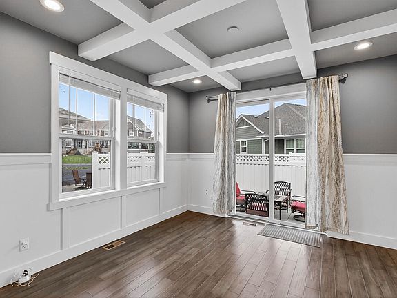 open-concept design flows gracefully into the dining area and a stunning kitchen showcasing built-in stainless steel appliances, quartz countertops, and timeless finishes that combine style and functionality. Also on the main level, enjoy the inviting sunroom with paneled walls-perfect for relaxing with a book or morning coffee. The spacious primary suite offers a walk-in closet with custom organizers, a luxurious soaking tub, and a separate shower. Step out to the back patio for a quiet retreat or evening unwind. The lower level extends your living space with two additional bedrooms, a workout room with a new sauna, and plenty of room for guests or hobbies. You'll love the lifestyle that Cobblestone Lake offers, walking trails, many parks and playgrounds, access to a 36-acre lake with a fishing dock, private community pool. Be within walking distance to Target, restaurants, coffee shops etc.