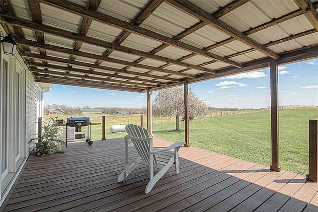 A REWARDING ESCAPE PEACEFULLY SITUATED: Immaculate & Upgraded, this custom built true Ranch Home rests on over 2 acres that backs to green space. Boasting an array of sleek new finishes and a thoughtful layout is a paradigm of country living. Features include ALL NEW Energy Efficient HVAC and Water Heater! Newer roof. Updates include: Refinished Engineered Hardwood Floors, New Carpet throughout, New interior and exterior paint, New Lighting, and freshly stained deck. This home also features a water softener, refrigerators, clothes washer/dryer, smart thermostat, and central vacuum!! A breakfast area looks out to the expansive backyard and flows into the galley-style kitchen where you'll find crisp white cabinetry, a breakfast bar, cooktop, and lots of storage space. The extra large master bedroom suite sits just off the living area and has a custom-built in TV armoire. The master bathroom has been remodeled and features new shiplap walls, ceramic tile floors, separate shower, and a deep soaking claw tub that makes this entire room an owner's retreat! The Living Room is spacious with vaulted ceilings and fabulous water views to the North. Two additional large bedrooms (one has built in speakers) are adjacent to the living area. The second main floor full bathroom has been remodeled as well! Good sized mudroom & laundry located next to the main level garage. The walk-out basement has a third garage and is large enough for 2 car tandem parking. The LARGE Workshop features a home garage Compressed Air System located in two garages, ready to take on those projects! You'll enjoy the private covered deck, so bring your coffee and wine, and make this house your home. There's plenty of room to throw the ball for the dog or build a playground! Move in Ready! All big ticket items have been updated. Less than 20 minutes to the grocery stores, Legends Shopping, Dining & Entertainment, Kansas Speedway and KC Sporting Soccer. Easy access to hwys. NO HOA!! Basehor-Linwood Schools 2022-05-09