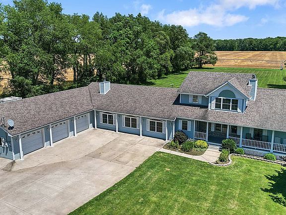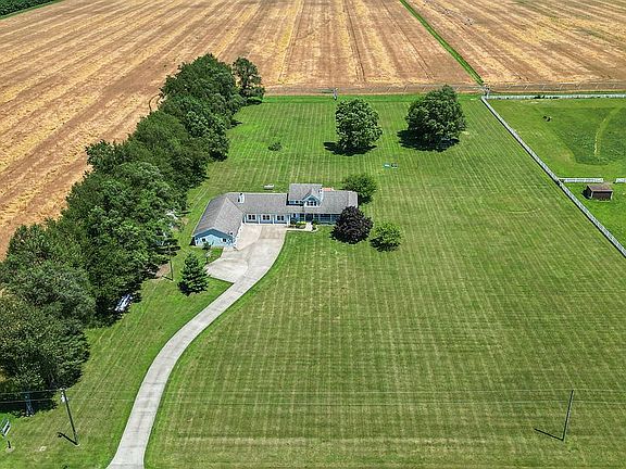 This 4,034 sq ft two-story home offers 5 bedrooms and 4 bathrooms, set on 5.1 acres of lawn and field perfect for horses, farm animals or recreation. Built in the 1990s, the home features a wrap-around covered porch on three sides, a large rear deck, a covered patio with hot tub, and a long concrete driveway with a permanent basketball hoop.