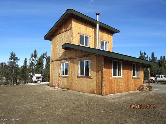 Charming new cabin/home just finished in Willow. 20'x24' wood frame home with 1 bedroom in the 1/2 loft. Lots of custom rustic trim. Great recreational area about 12 miles up Hatcher Pass road from the Parks Highway. Hunt, Snow machine, ATV from your front door. Off the power grid price includes a 6kw Diesel Generator. Custom Outhouse. Please slow down on Darrel Drive for Neighbors older dog.