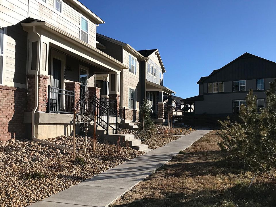 Beautiful Brand New 3 Bedroom Paired Home in Trails Edge/Dove Valley. This beautifully finished, almost brand-new paired home in the Trails Edge community features 1,920 finished square feet above grade, with 3 bedrooms, 2.5 bathrooms, & an attached 2-car garage. This "Perry Park" model is highlighted by an open-concept main floor that offers a family and dining area with an abundance of LED lighting, as well as a main floor office. The well-appointed kitchen features Natural cabinetry, quartz kitchen countertops, a pantry, and stainless-steel kitchen appliances, including a gas range. The upper level features three bedrooms in total, including the master suite, which boasts a bathroom with dual sinks, a shower, and a walk-in closet. In addition, the top level provides a shared spare bathroom (also featuring a dual vanity with quartz countertops) and a dedicated laundry room. This unit also offers an open, unfinished basement with nearly 900 square feet of space. This property is situated in the newly developed area near C-470 & Jordan Road, Broncos Parkway, Dove Valley Business Park