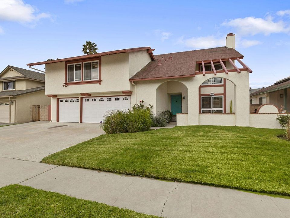 Super spacious Mountain Valley home with large BONUS room over the 3 car garage. Upon entering the home you will enjoy the above ground water pond in the courtyard area. The formal living room has a fireplace and a beautiful custom mantle. This beautifully remodeled kitchen has new cabinets which included tons of pull out drawers, lazy Susan, glass doors and bread box. Also included are granite counters, designer tile back splash, refrigerator and trash compactor. Some other features are double pane windows, recessed lighting, some crown molding, plantation shutters and designer tile flooring. Off the kitchen is the large family room with an extra built-in cabinet, great for entertaining. The extra large master suite offers a large walk in closet and en-suite bathroom with large shower. This home has a very large BONUS Room, which can be used as a home office, 5th bedroom or playroom. Very nice size backyard with patio cover and Apricot tree. Close to the Berylwood Elementary School and the Park. Great location in Central Simi Valley. You don't want to miss seeing this home.