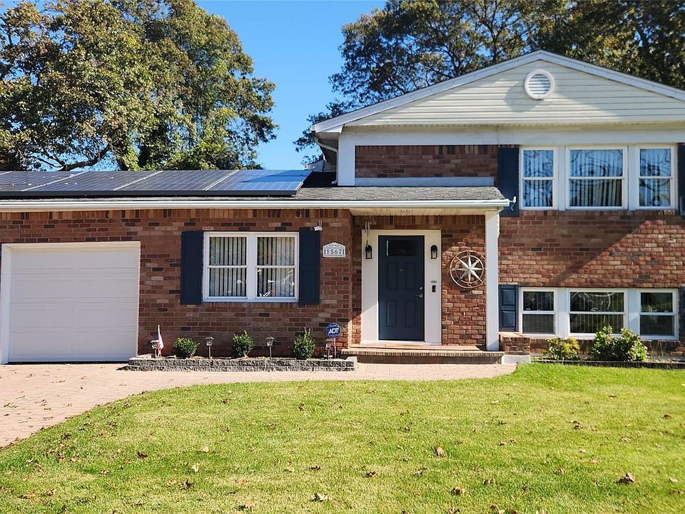 Pride of ownership shines throughout! Updates include a **new kitchen (2022)**, **new central air conditioning (2022)**, **solar panels installed in 2015** with **no lease payments (grandfathered plan)**, **hot water heater (2017)**, and **new garage doors (2025)**. The exterior is equally impressive with a **professionally installed paver driveway and patio set on 4” of concrete**, **industrial-sized cesspool**, **drywells for both laundry and downspouts**, and an **8-zone in-ground sprinkler system**.