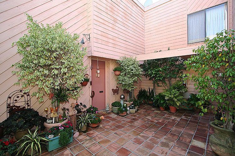 2 story townhouse north of Santa Monica Blvd in a cozy 4 unit complex. This unit has a step down living room with wood burning fireplace with a lovely view out the balcony. Master bedroom has cathedral ceiling with great closet space and a spacious 2nd bedroom. Laundry inside the unit and additional storage area in the garage. Beautiful courtyard entry to unit.