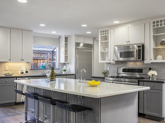 A Willow Glen Oasis located close to downtown Willow Glen & the Pruneyard! Gorgeously remodeled throughout with an open floorplan boasting 3 Bedrooms & 3 FULL Baths. Stunning Chefs Kitchen featuring a HUGE ISLAND with breakfast bar, quartz countertops, modern grey & white finished cabinetry, stainless appliances, gas stove, wine fridge, ice maker & garden window. The kitchen overlooks the inviting living room with ledger stone gas fireplace. Formal dining room with wood burning fireplace. STAY-CATION in this oasis backyard! Sparkling, heated pool & spacious cabana surrounded by lush plants, an accent arbor, string lighting & veggie garden beds. Pool safety fence included and installs easily. Stay energy efficient with the OWNED SOLAR system that powers the household. Skylights, Spacious Laundry Room, Smart Nest Thermostat, Dual Pane Windows Throughout. Central Heating & Air. Just a few blocks to the entrance of the Los Gatos-Campbell hiking trail. Moments to Whole Foods, Trader Joes!