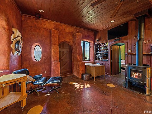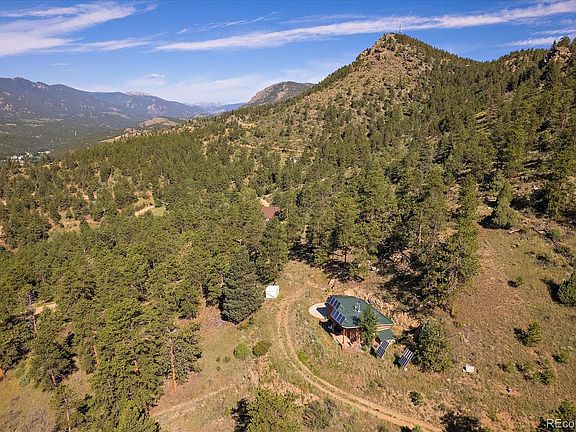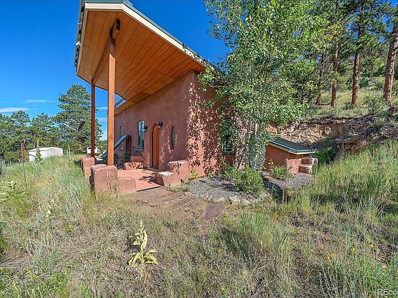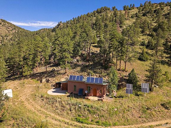 Escape to your very own off-grid paradise overlooking the Pike National Forest in the mountains above the town of Bailey, Colorado. Nestled amidst 8.5 acres featuring rock outcroppings, aspen groves and fragrant pines, this one-of-a-kind straw bale cabin with its natural insulation and earthy aesthetic seamlessly merges with the rugged beauty of the surrounding landscape. It feels like it is a million miles away, yet high speed internet is available through Starlink and restaurants, shopping and groceries are only a 15 minute drive away. The straw bale construction insures a cool interior on hot summer days and cozy warmth on chilly nights. The wood stove creates the feeling of a classic cabin situated in front of live edge burnished wood mantle, while the radiant floor heat powered by its own solar array guarantees luxurious comfort. The extra tall windows welcome sunshine and breathtaking vistas. The open-concept design and well thought out pantry and extra storage means that you can stock up and enjoy your time however you choose. Don’t miss the sunset sending long shadows across the valley as you relax on the covered patio watching the stars pop out of a deepening blue sky. Hiking, biking, fishing, disk golf and more, are mere minutes away. Make it your mountain get-away or year round residence. Please do not drive up the driveway without an appointment and accompanied by a licensed real estate agent.